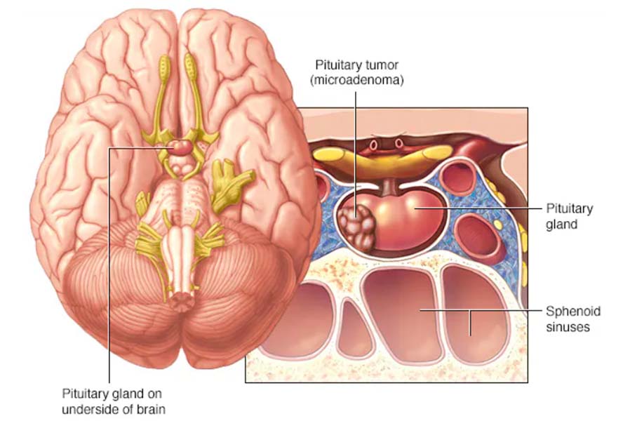 Pituitary tumors are abnormal growths that develop in the pituitary gland, a small gland located at the base of the brain behind the nose and beneath the hypothalamus. The pituitary gland plays a crucial role in regulating various bodily functions by producing and releasing hormones that control growth, metabolism, reproduction, stress response, and other processes.